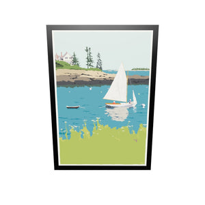 Sailing Long Cove Art Print 36" x 53" Framed Wall Poster By Alan Claude - Maine