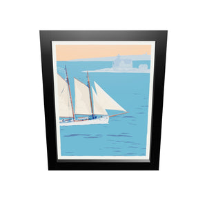 Schooner at the Cuckolds Art Print 8" x 10" Framed Wall Poster By Alan Claude - Maine