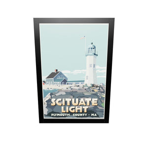Scituate Light Art Print 24" x 36" Framed Travel Poster By Alan Claude - Massachusetts