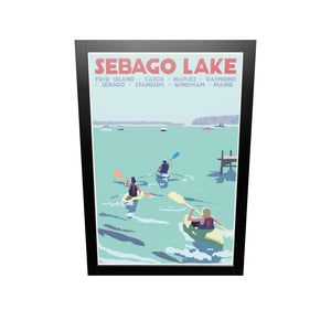 Sebago Lake kayakers Art Print 24" x 36" Framed Travel Poster By Alan Claude - Maine