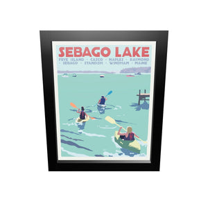 Sebago Lake kayakers Art Print 8" x 10" Framed Travel Poster By Alan Claude - Maine
