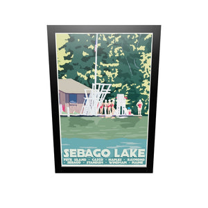 Sebago Lake Swimmers Art Print 24" x 36" Framed Travel Poster By Alan Claude - Maine