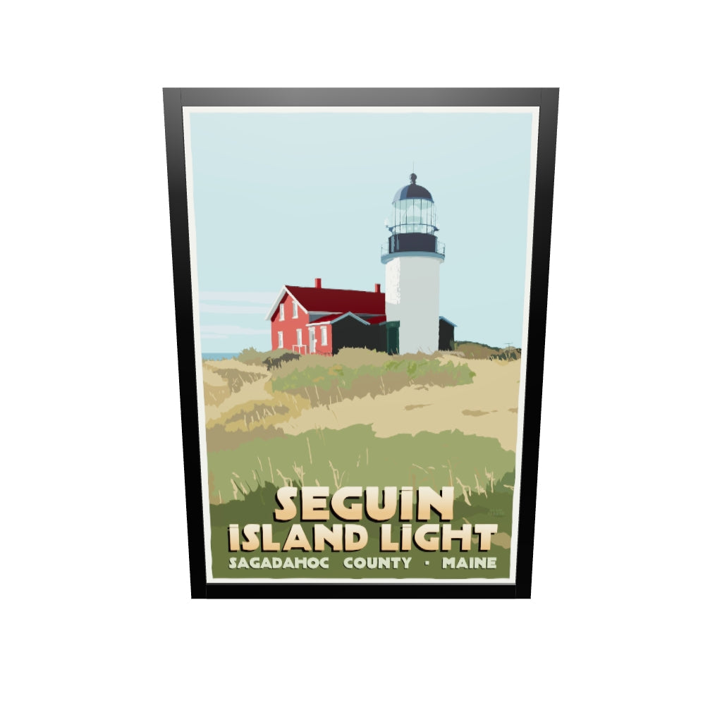 Seguin Island Light Art Print 18" x 24" Travel Poster By Alan Claude - Maine