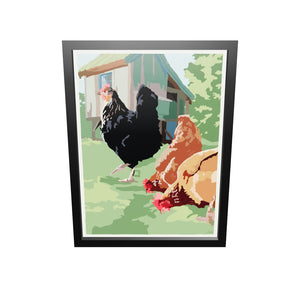 Spring Chickens Art Print 18" x 24" Framed Wall Poster By Alan Claude - Maine