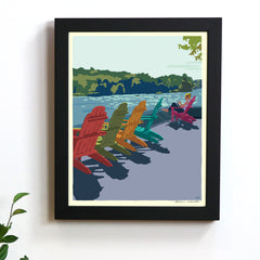 Summer Chairs Art Print 24" x 36" Framed (Vertical) Wall Poster By Alan Claude - Maine