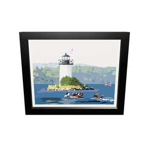 Sunset at Ladies Delight Lighthouse Art Print 8" x 10" Horizontal Framed Wall Poster By Alan Claude - Maine