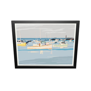 Sunset at Minot's Ledge Light Art Print 18" x 24" Horizontal Framed Wall Poster By Alan Claude - Massachusetts