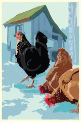Winter Chickens Art Print 24" x 36" Wall Poster By Alan Claude - Maine