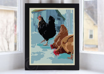 Winter Chickens Art Print 8" x 10" Wall Poster By Alan Claude - Maine