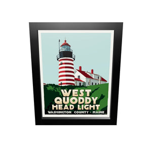 West Quoddy Head Light Art Print 8" x 10" Framed Travel Poster By Alan Claude - Maine