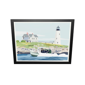 Wood Island Light Art Print 18" x 24" Horizontal Framed Wall Poster By Alan Claude - Maine