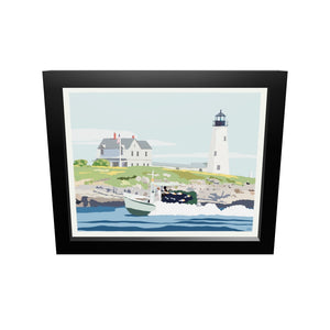 Wood Island Light Art Print 8" x 10" Horizontal Framed Wall Poster By Alan Claude - Maine