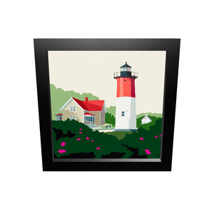 Nauset Light Art Print 8" x 8" Framed Wall Poster By Alan Claude - Massachusetts