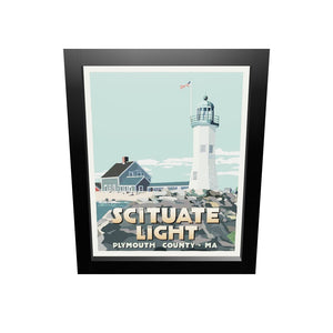 Scituate Light Art Print 8" x 10" Framed Travel Poster By Alan Claude - Massachusetts