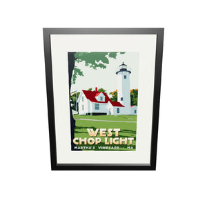 West Chop Light Art Print 18" x 24" Framed Travel Poster By Alan Claude - Massachusetts